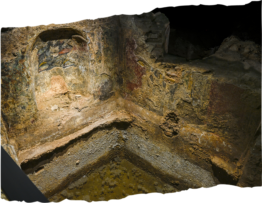 Viaja a un enclave excepcional donde se conservan restos romanos y bizantinos: viviendas, factorías, piletas, pinturas murales y una fuente monumental que revelan siglos de historia y transformación en la periferia norte de la antigua ciudad.
